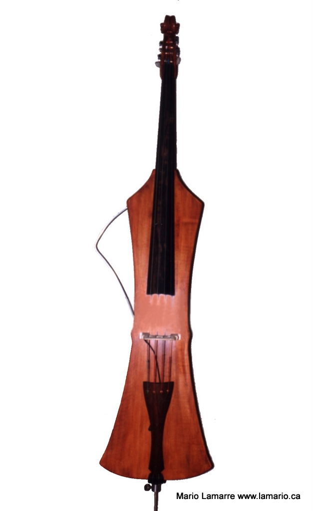 Cette contrebasse a été conçue pour être amplifiée, servir à la pratique acoustique et être transportée de façon compacte en voyage.