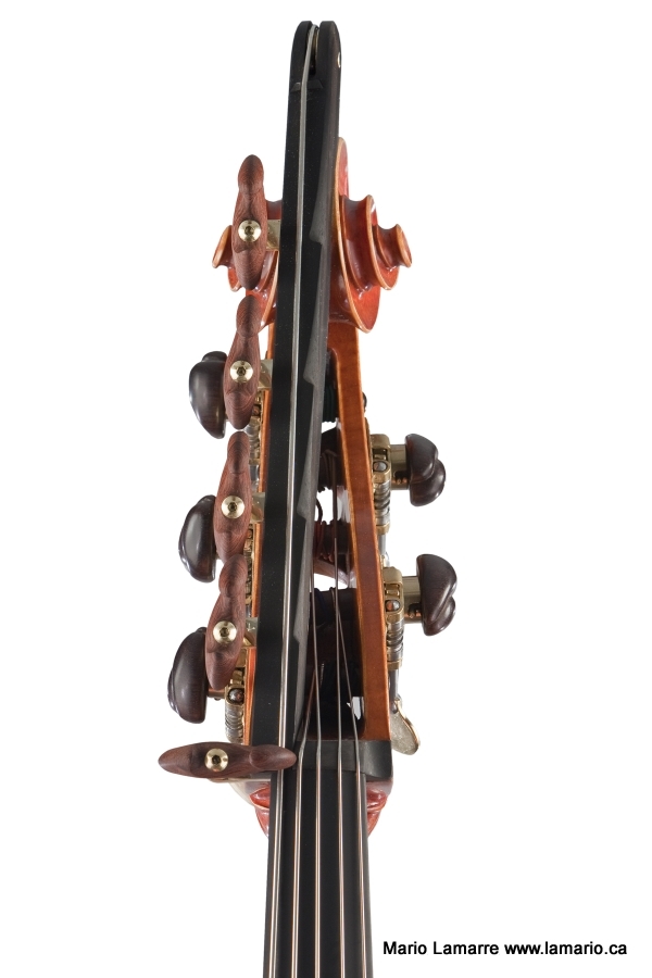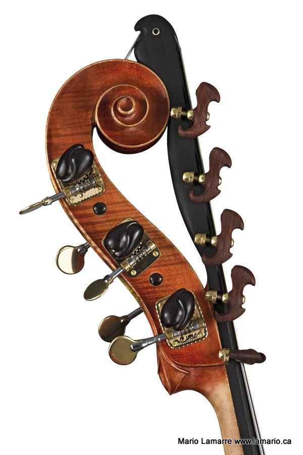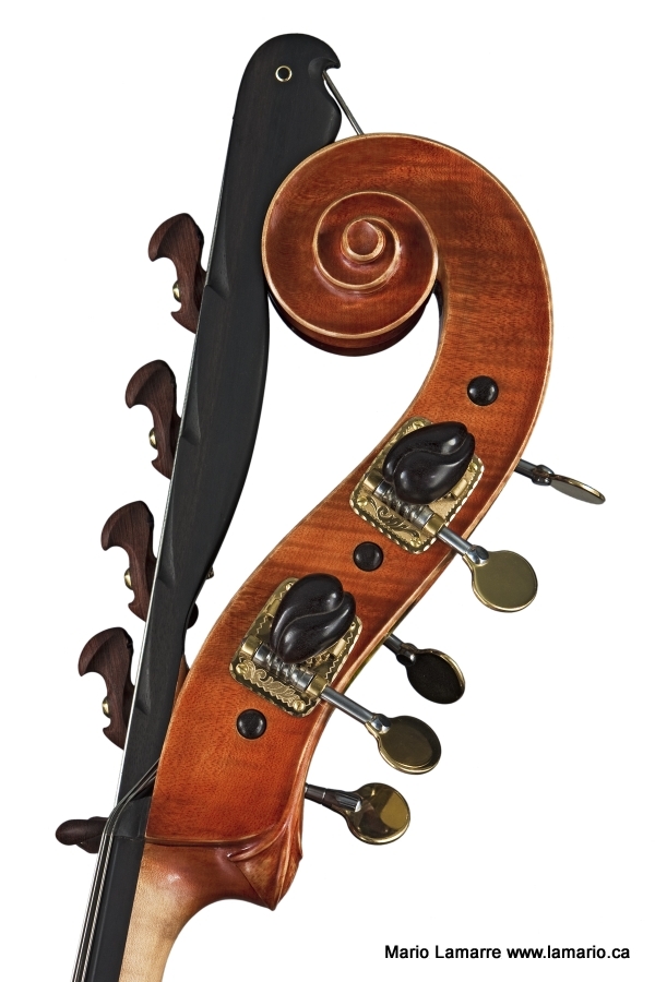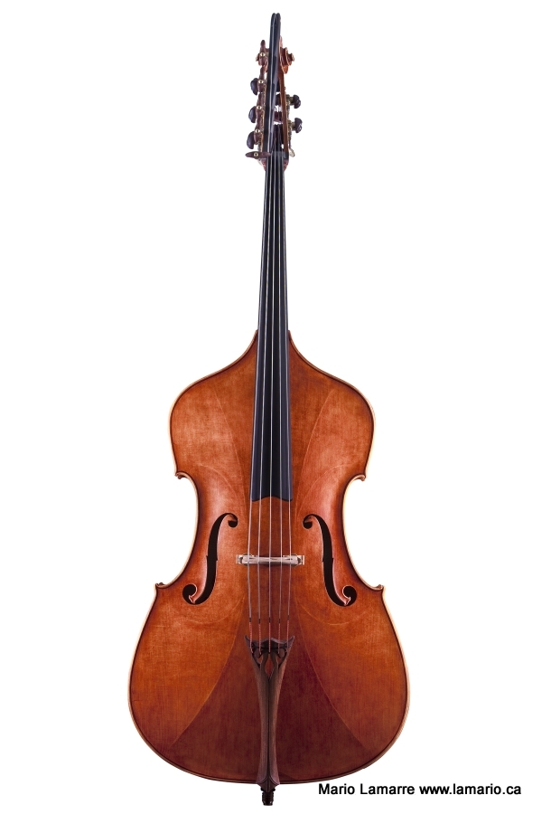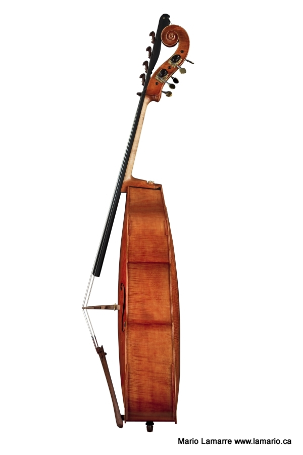 This personal double bass model has long ‘C’s’ and little corners to make it easier to play with a German bow.
